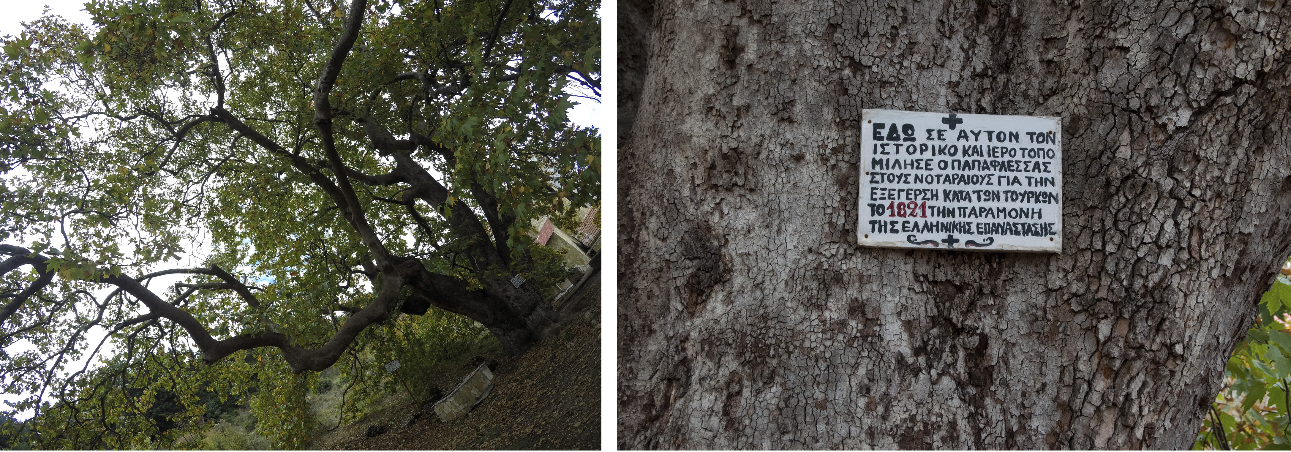 Στα Μεσαία Τρίκαλα, πήγαινε στην Ιερά Μονή Βλασίου και ακολούθησε το μονοπάτι που σε οδηγεί στο δάσος πίσω από την Μονή. Θα βρεθείς κάτω από τον πλάτανο όπου μίλησε ο Παπαφλέσσας την παραμονή της επανάστασης του 1821.