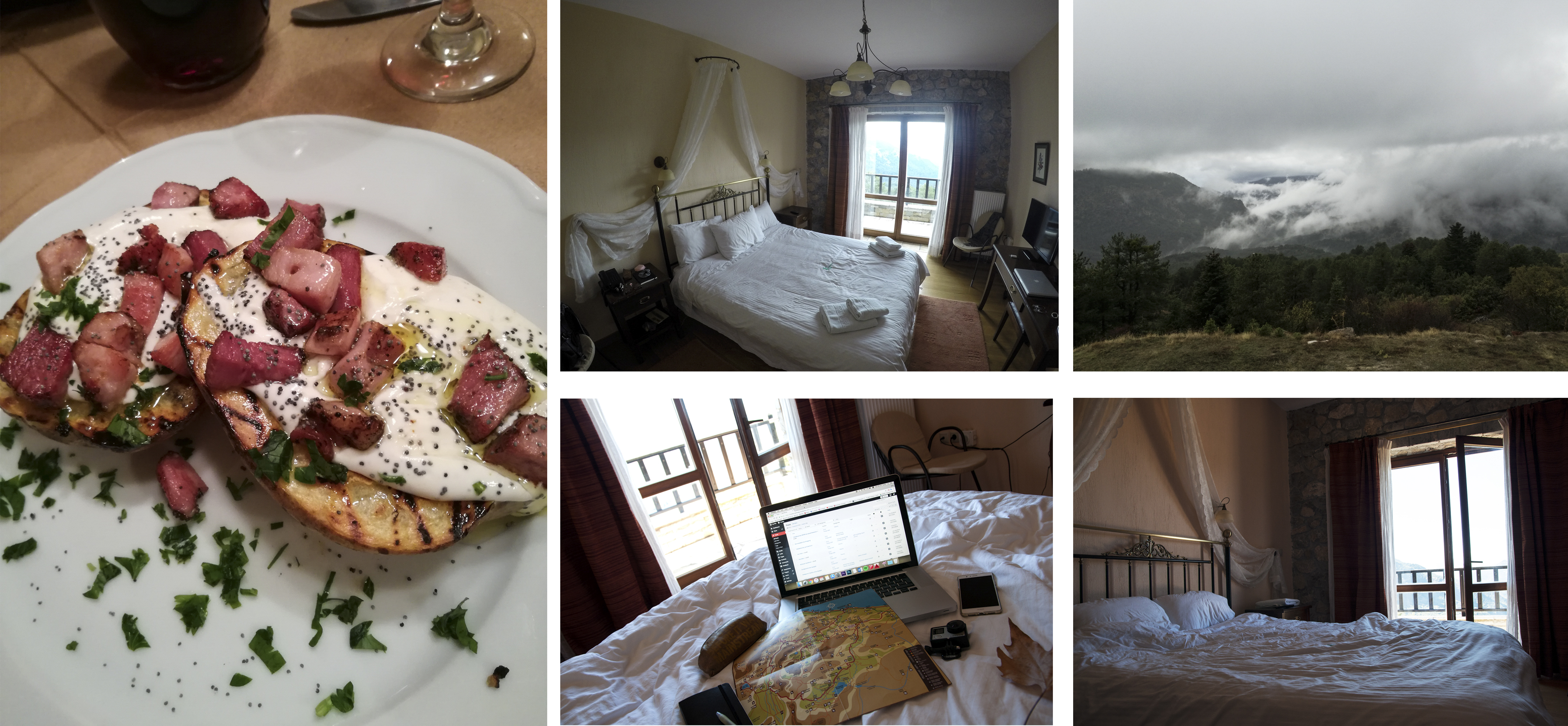 Το Karyatis Resort, όπου και θα με φιλοξενούσε για τις επόμενες μέρες βρίσκεται στην Καρυά, 6 χλμ περίπου από την Μέση συνοικία Τρικάλων και σε υψόμετρο 1.250 μ. Εκεί με υποδέχθηκε ο κύριος Κώστας, ο φιλόξενος ιδιοκτήτης και οικοδεσπότης του ξενοδοχείου. Τα δώματια έχουν διαφορετικό όνομα το κάθε ένα, έτσι είχα την τύχη να μείνω στον ”Όλβιο. Τον ”Όλβιο της ευτυχίας” όπως έσπευσε να με ενημερώσει ο ίδιος. Το δωμάτιο άνετο και με υπέροχη θέα προς το βουνό. Το μόνο αρνητικό, για εμένα τουλάχιστον, είναι οι μπαλκονόπορτες που δεν έχουν παντζούρια. Όπως ενημερώθηκα όμως αυτό θα αλλάξει σύντομα. Στο Karyatis Resort, πέρα από την ξεκούραση, θα απολαύσεις την υπέροχη θέα, την ζεστή φιλοξενεία και το υπέροχο φαγητό. Δοκίμασε πατάτες ψητές με σως γιαουρτιού και χοιρινό αλαντικό.